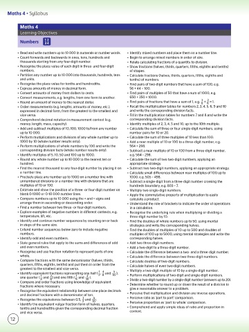 • Partition any number up to 10 000 into thousands, hundreds, tens • Calculate fractions (halves, thirds, quarters, ifths, eighths and