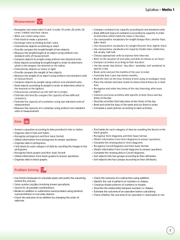 • Estimate the capacity of a container using non-standard units of • Describe activities that take place at key times of the day.